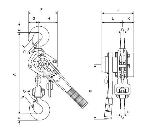 | Typ | Nr katalogowy | DOR | Układ cięgien | Łańcuch d x t | Podnoszenie na 1 obrót dźwigni | Wymagana siła | Masa |